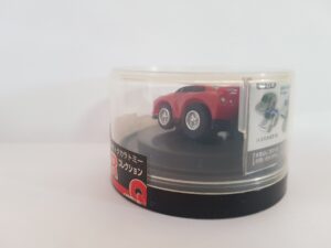 Description : Choro-Q feature real rubber tires (usually with larger ones on the rear) and the characteristic coil-spring pullback motor. Also, each Choro-Q is a “cute” squeezed design caricature of the actual vehicle it represents. This type of caricature is also known as “deformed scale” as it gives the car a foreshortened or deformed appearance.